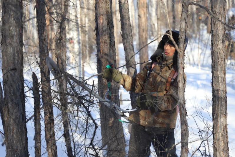 同样在严寒中攀山踏雪的还有大山深处的营林工人。