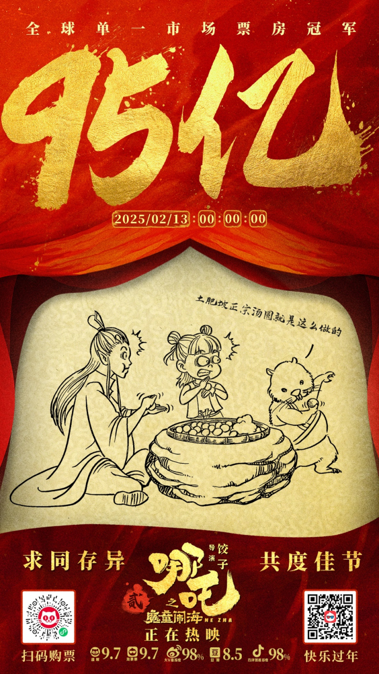 元宵节已过,动画电影《哪吒之魔童闹海》的票房纪录仍在不断刷新。到2月12日晚千里马配资,电影票房已突破95亿元。